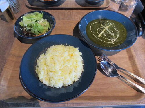 昼飯 母に乞われて、蓮華寺池近くに出来たカレー屋へ行ってまいりました。 ほうれん草ベースのチキンカレー上から2番目の辛口にしてみたが、激辛でも何ら問題はなかった模様。 でも美味しかった。ナンも美味しかった。 但し、サフランライスは柔らかくて微妙…