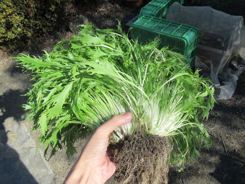 だらだら日曜日 コタツでアニメを垂れ流しながら世界樹に潜る日曜日。 ちょっと、いや大分腰が痛くてですね(^^; 寒くなると腹筋サボりがちだから罰が当たった模様。 ↓の作業が辛くてね…… 家庭菜園(拡大版) 外:冬の収穫祭 水菜 ラスト一株を収穫 整えて空…